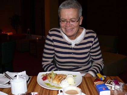 Frieda beim Frühstücken